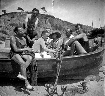 De gauche à droite : Le peintre KARS, Le cubiste METZINGER, Germaine LABAYE (qui de viendra l'épouse de R. Wild), SCHULEIN et ROGER WILD